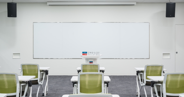 모두미술공간은 전시 공간과 커뮤니티 공간으로 구성되어 있습니다. 전시 공간은 1전시실, 2전시실로 나뉘며 다양한 전시와 프로그램이 열립니다. 커뮤니티 공간은 세미나실, 회의실, 라운지로 구성되어 있어 소규모 강연, 워크숍, 세미나 활동 등 전시와 관련된 여러 활동을 할 수 있습니다. 이 두 공간은 작품을 만들고, 전시하고, 함께 이야기 나누는 활동이 자연스럽게 이루어질 수 있도록 만들어졌습니다.